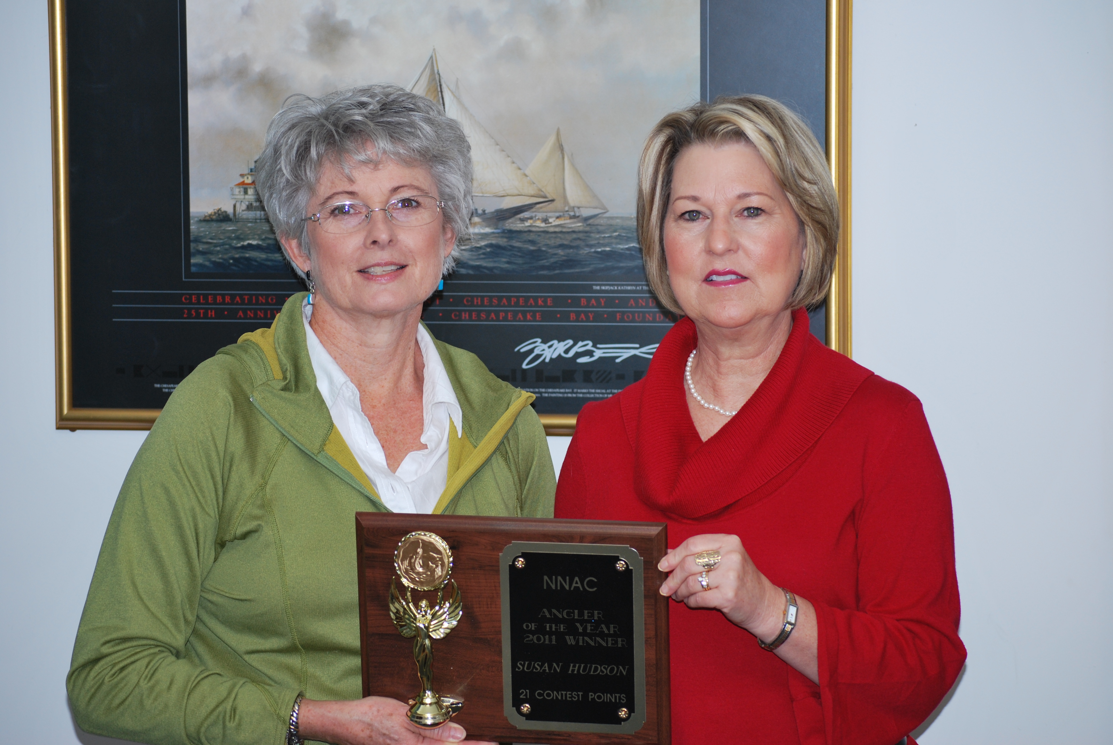 Susan Hudson receiving plaque from Karen Jett.